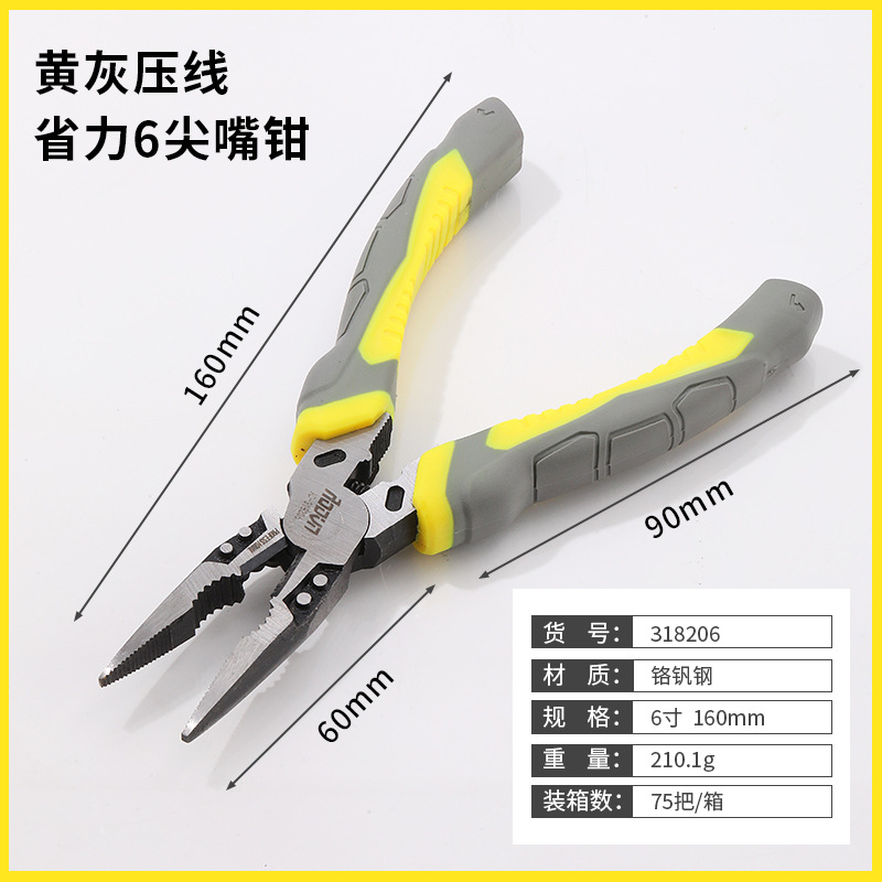 • 노란색 재 압력 라인 노동 절약 6 인치 뾰족한 코 펜치 클램프, 318206