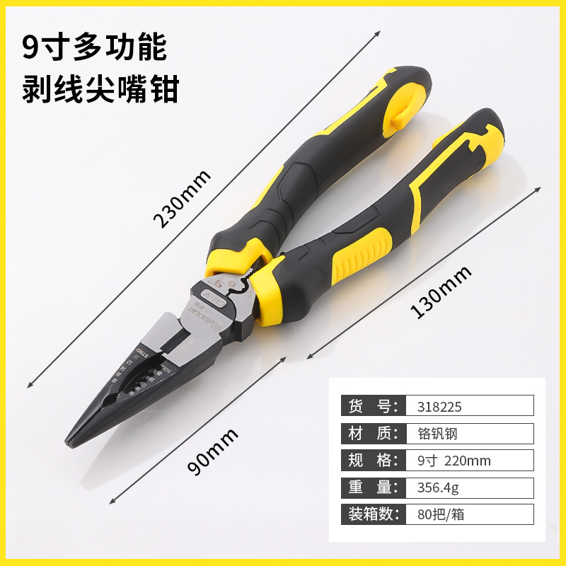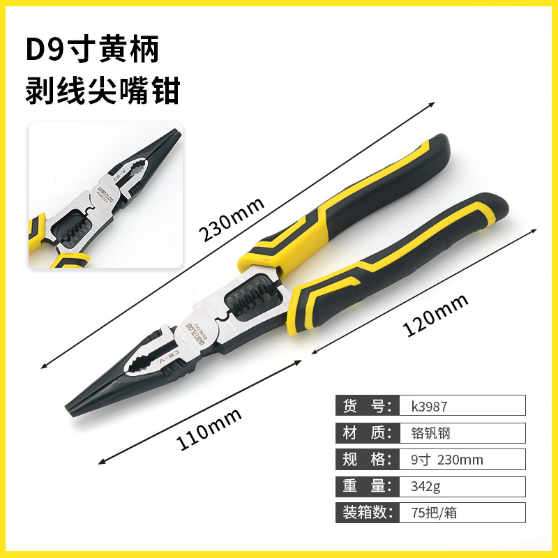 • D9 인치 노란색 핸들 다기능 와이어 스트리핑 바늘 코 펜치, K3987
