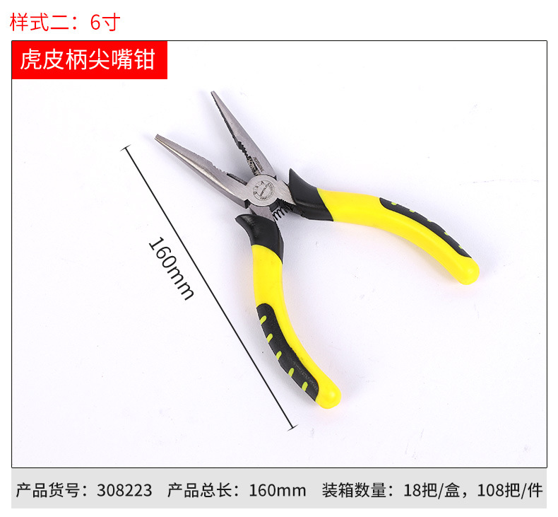 • 6 인치 호랑이 가죽 손잡이 뾰족한 코 펜치 클램프, 308223