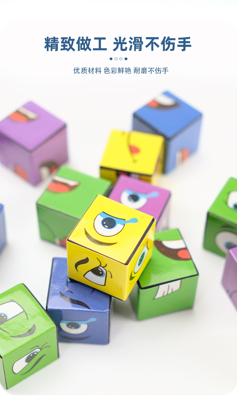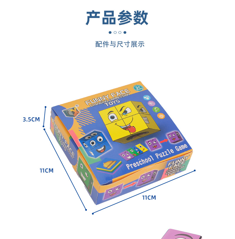 MMM-小号纸盒变脸魔方:9.5*9.5*4.2CM 外箱规格:50*23.5*41CM 产品重量:0.2KG 装箱数:100/件 毛/净重21/20KG