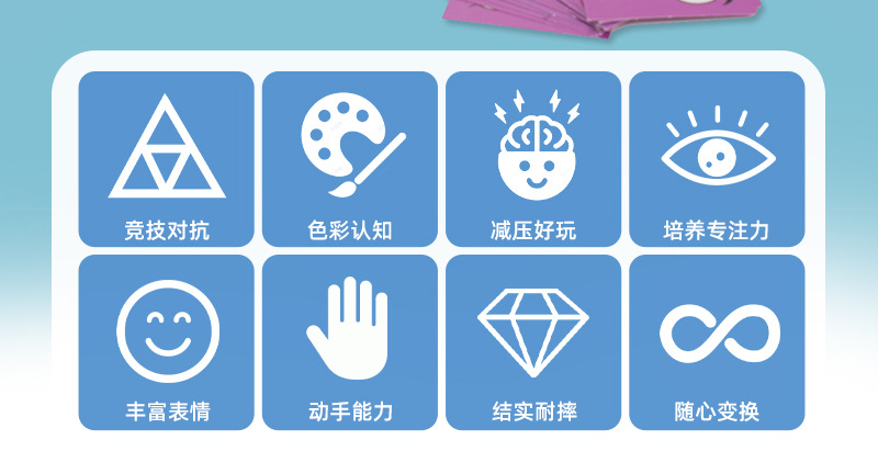 ZKB-彩盒变脸积木:17.5*12.5*3CM 外箱规格:49.5*27*34CM 产品重量:0.33KG 装箱数:60/件 毛/净重21/20KG