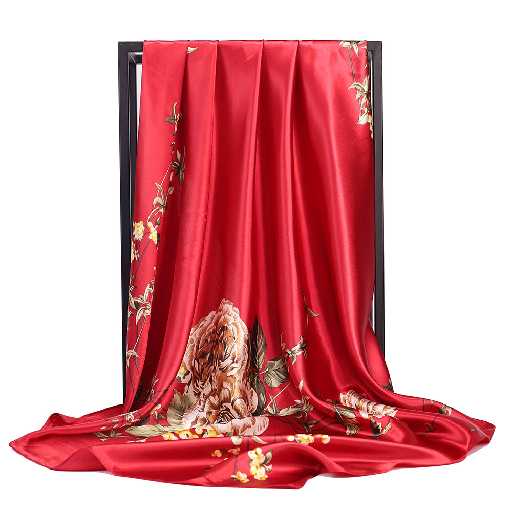 90cm 가을 새로운 꽃 모조 실크 말레이 스카프 대형 사각 숄 스카프 도매스토어 가기