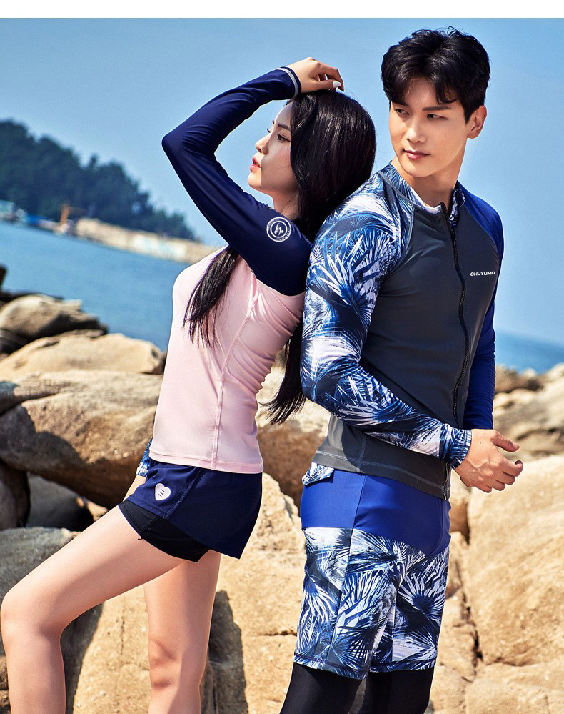 남녀공용 수영복 커플, 스노클링복, 자외선 차단, 속건성 서핑복, 수영복, 프린트 긴팔 반바지, 다이빙 슈트스토어 가기