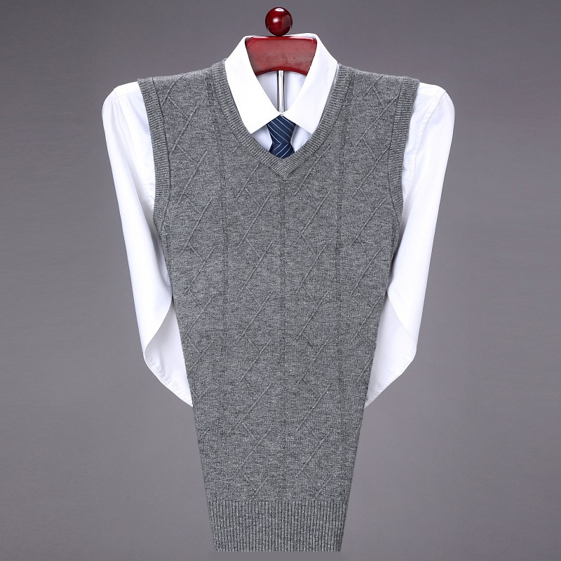 가을과 겨울 새로운 니트 조끼 남성용 스웨터 조끼 V-넥 중년 및 노인 아빠의 조끼 스웨터 남성복스토어 가기