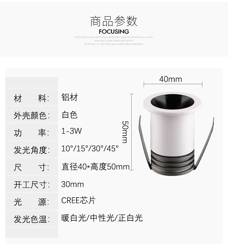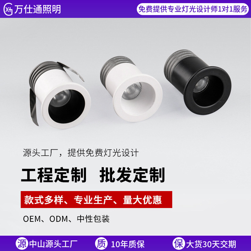 맞춤형 35mm 오프닝 3W 은폐 좁은 측면 디스플레이 캐비닛 작은 스포트라이트 프로젝트 눈부심 방지 LED 보석 카운터 장식 스포트라이트