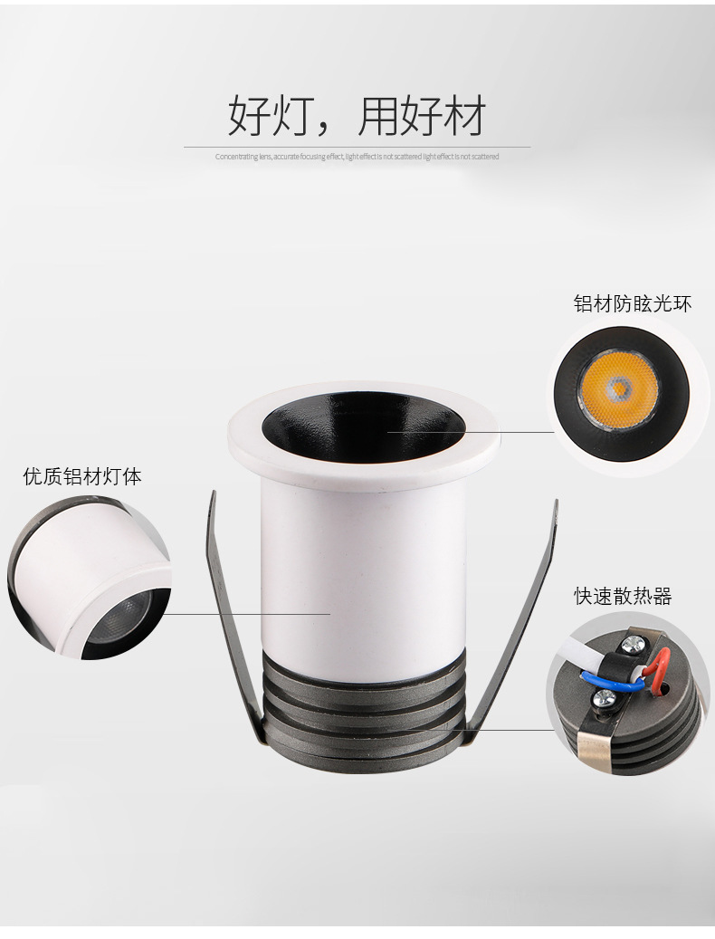 맞춤형 35mm 오프닝 3W 은폐 좁은 측면 디스플레이 캐비닛 작은 스포트라이트 프로젝트 눈부심 방지 LED 보석 카운터 장식 스포트라이트스토어 가기