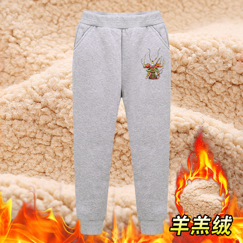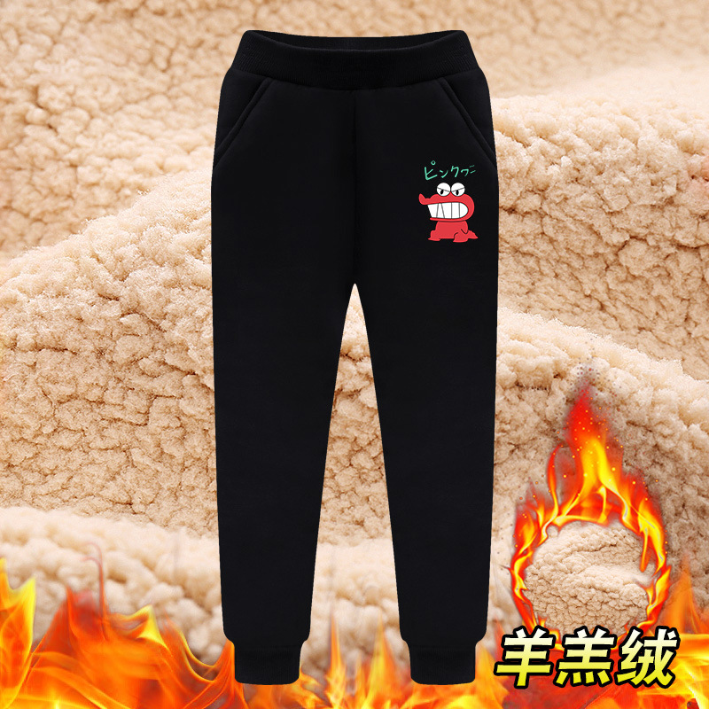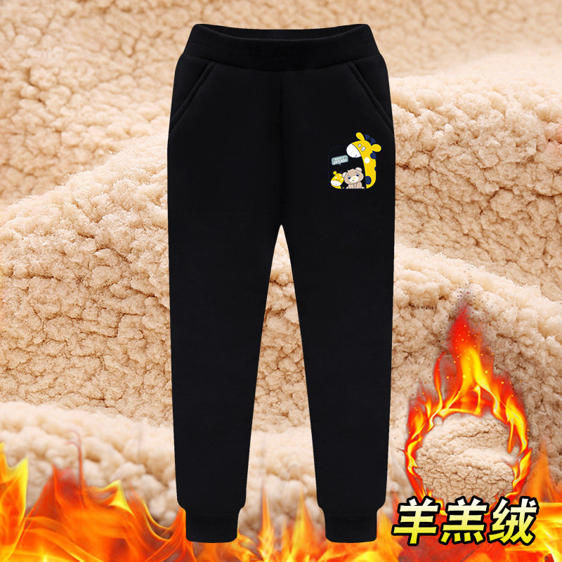 소년 겨울 기모 두꺼운 바지 어린 양 양털 스포츠 바지 우콩 2024 원피스 양털 면 바지
