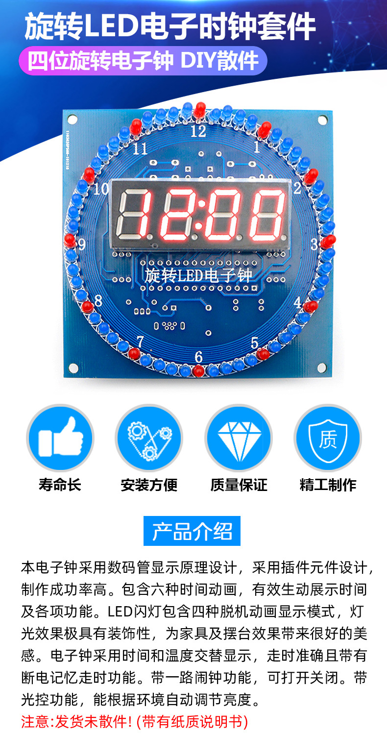 회전 LED 전자 시계 키트 조명 제어 온도 DS1302 C8051 단일 칩 컴퓨터 DIY 전자 제품 (부품)스토어 가기