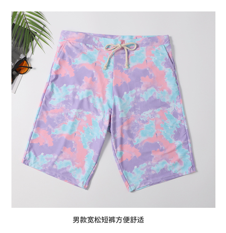 커플의 새로운 수영복 여성용 스포츠 캐주얼 배꼽 덮음 슬리밍 여성용 느슨한 비대 블라우스 쓰리피스 남성용 비치 팬츠