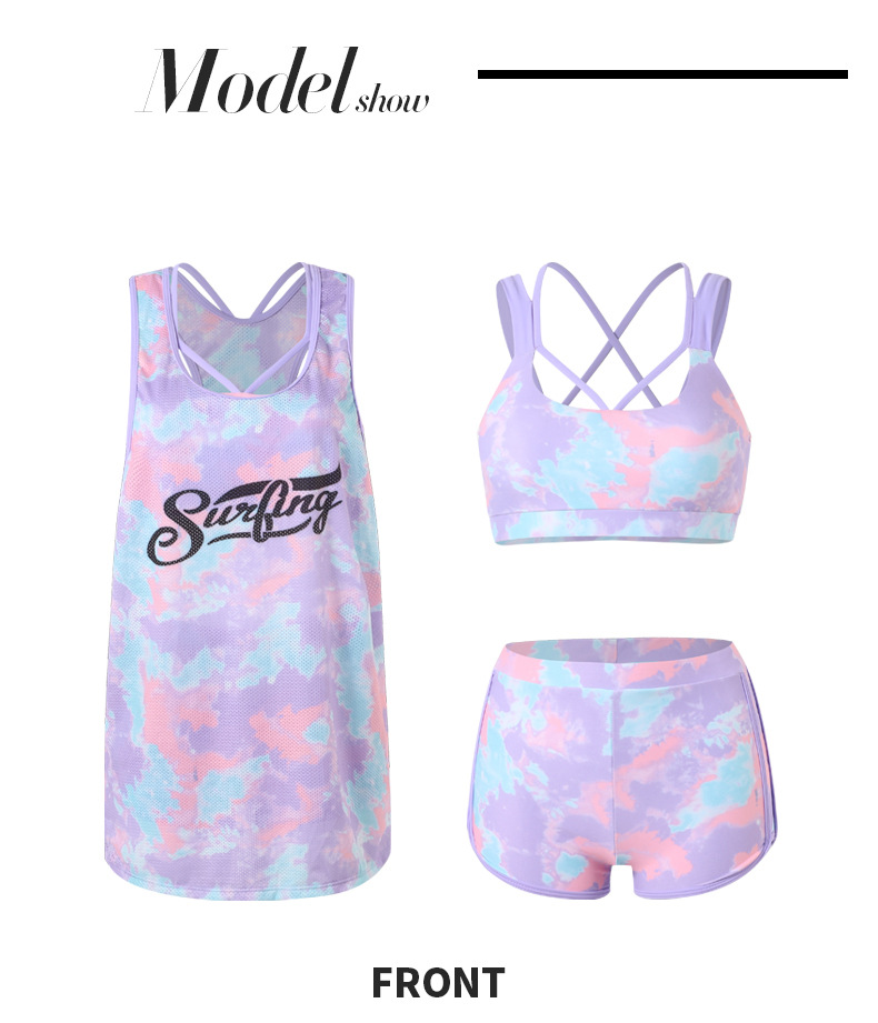 커플의 새로운 수영복 여성용 스포츠 캐주얼 배꼽 덮음 슬리밍 여성용 느슨한 비대 블라우스 쓰리피스 남성용 비치 팬츠스토어 가기