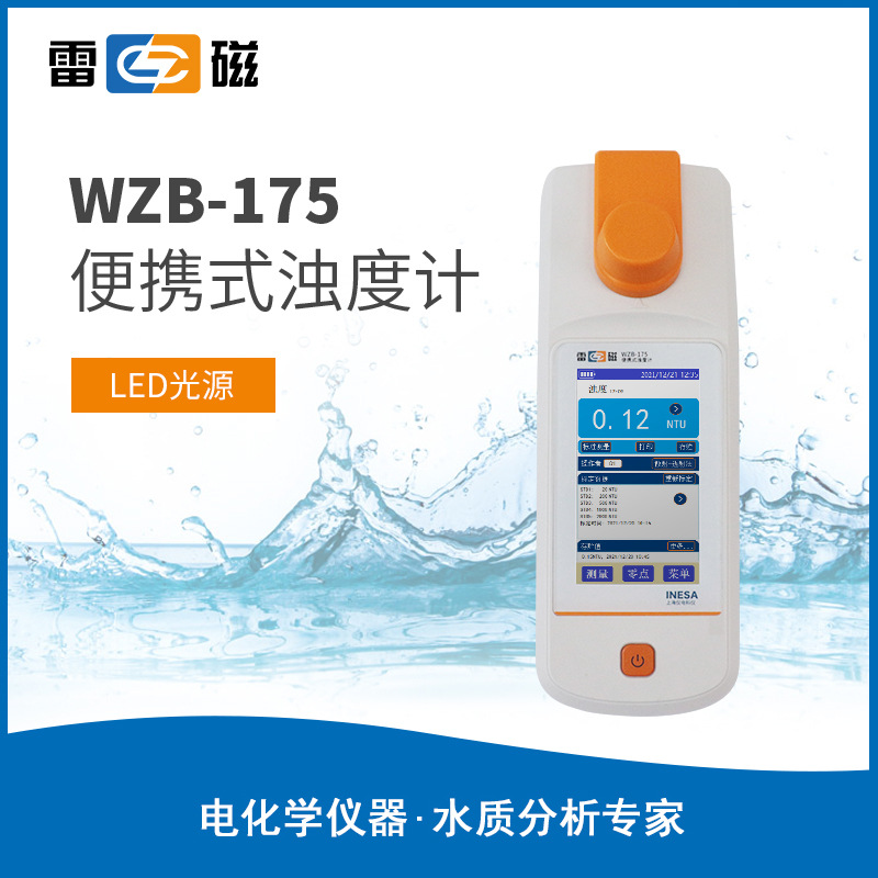 WZB-175型便携式浊度计,LED光源,采用850 nm波长,满足ISO 7027标准;采用散射-透射光测量原理,多方向接收散射光信号。比率校准,自动色度补偿;支持USB通讯,支持连接PC进行数据采集
