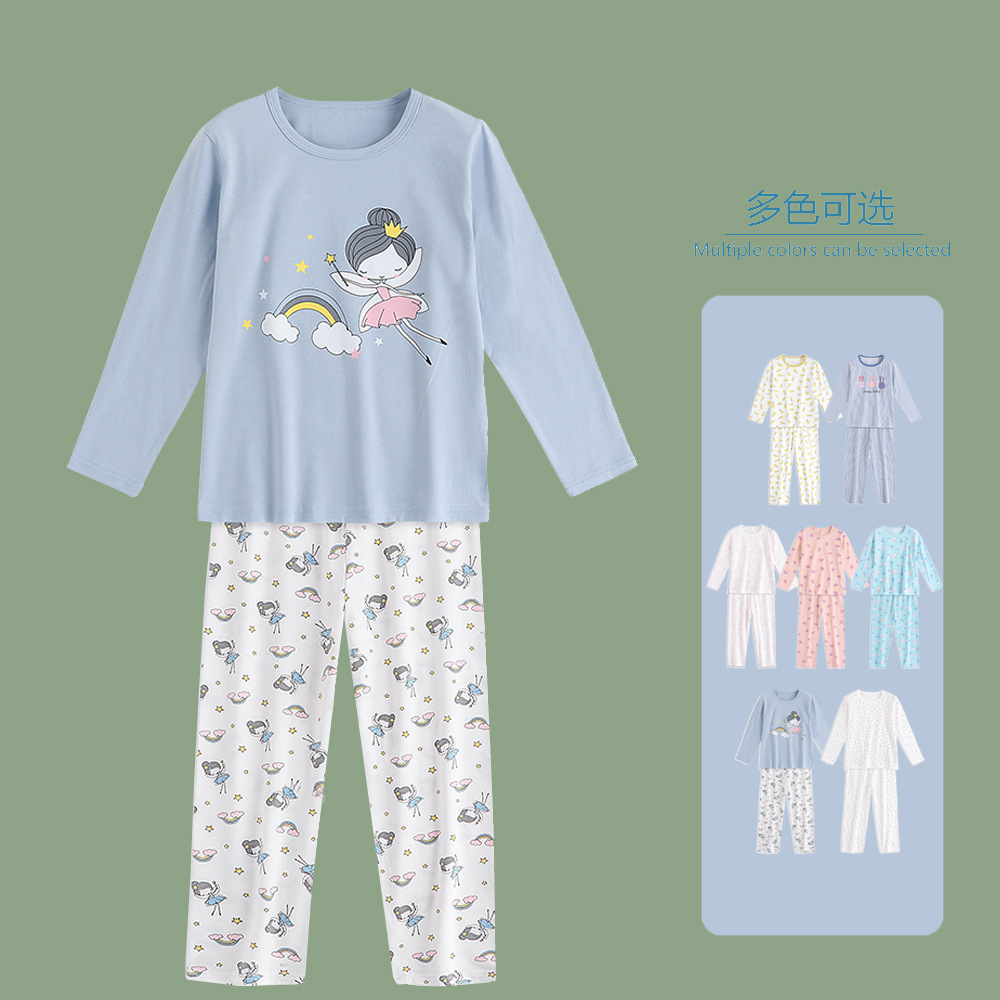 어린이 잠옷 소녀의 긴 소매 면 소녀의 봄과 가을 공주 아기의 가정 옷 세트 큰 아이들을위한 만화 속옷스토어 가기
