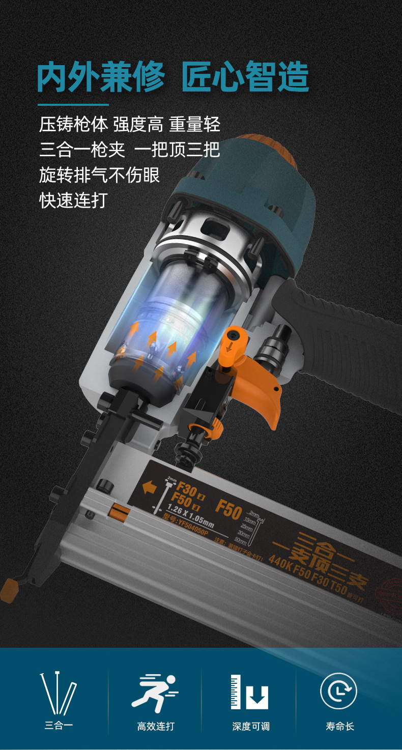 DAJ 공압 쓰리인원 에어 네일 건 목공 f30 네일 건 스틸 네일 건 네일 슈터 U 코드 네일 스팀 네일 슈팅