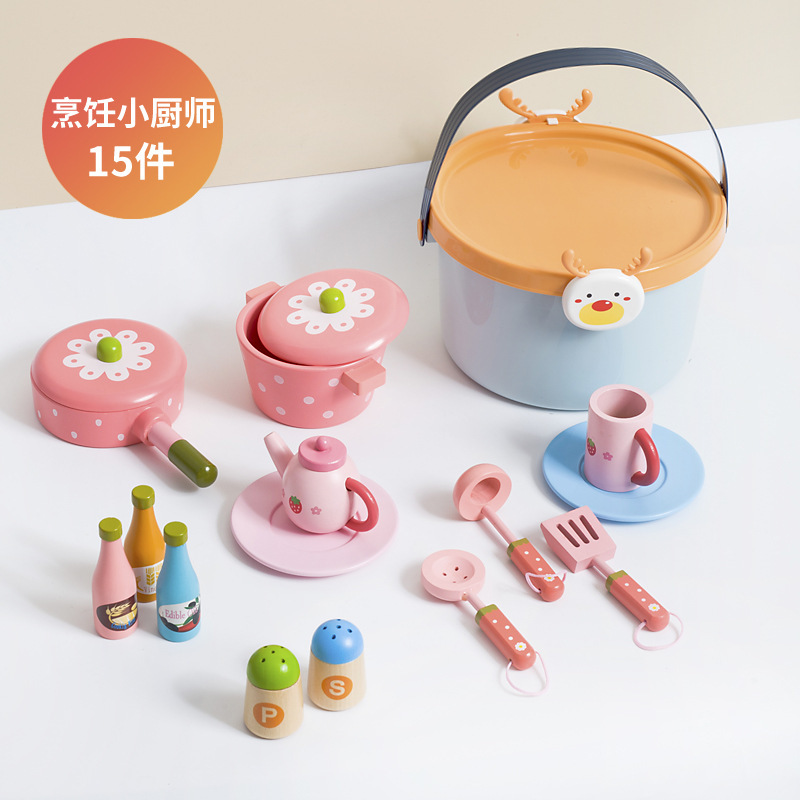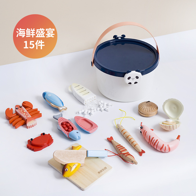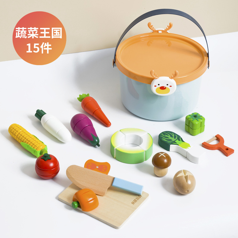 어린이 과일 치핑 장난감 피자 과일 야채 해산물 놀이 집 치핑 시계 휴대용 양동이 저장 세트스토어 가기