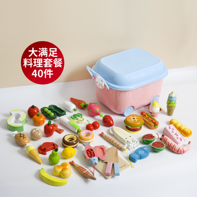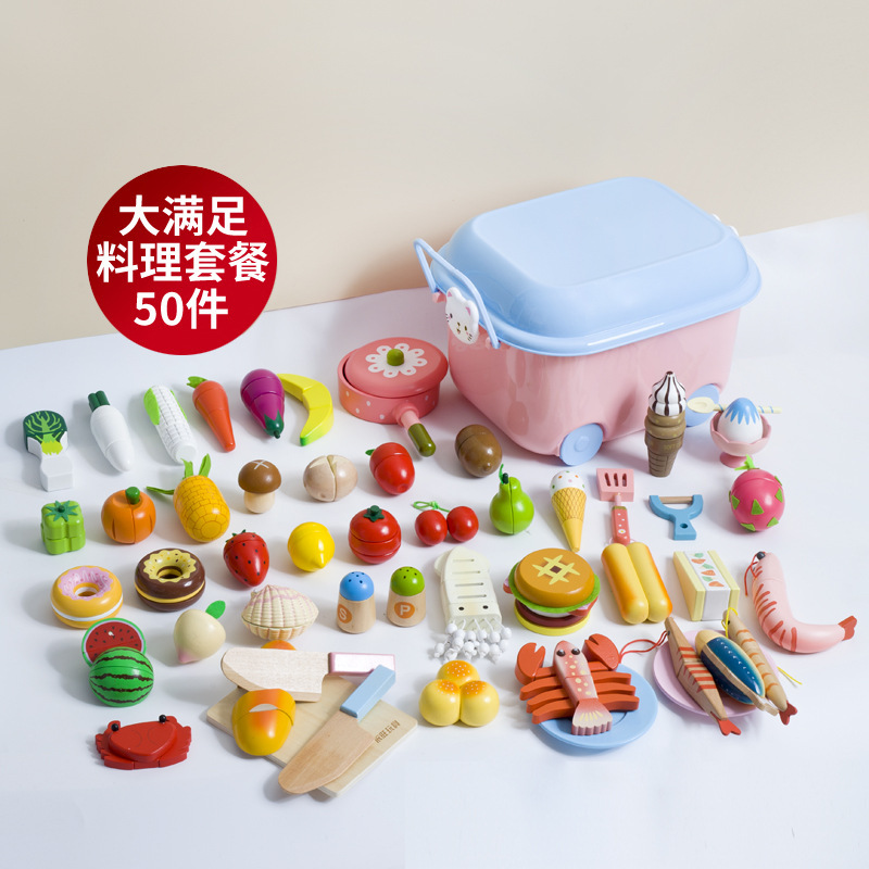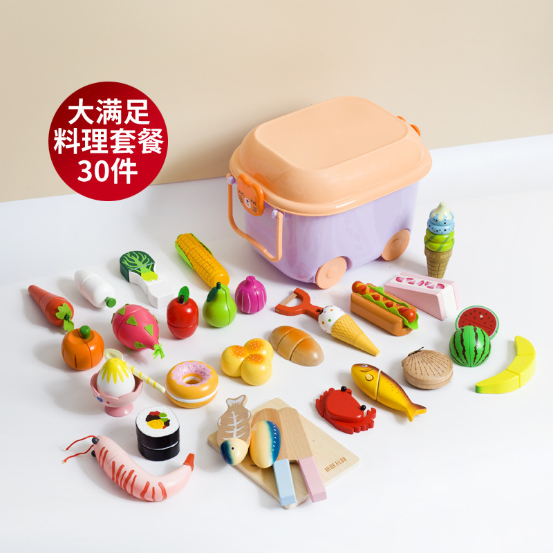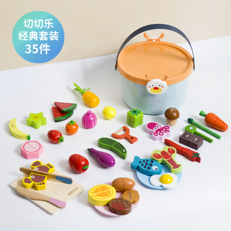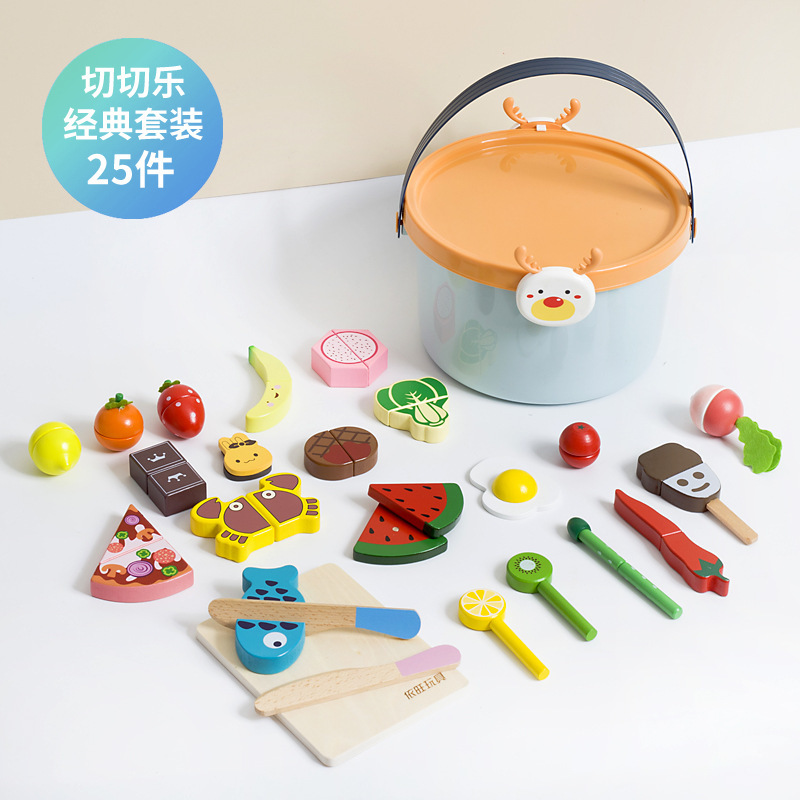 어린이 과일 치핑 장난감 피자 과일 야채 해산물 놀이 집 치핑 시계 휴대용 양동이 저장 세트