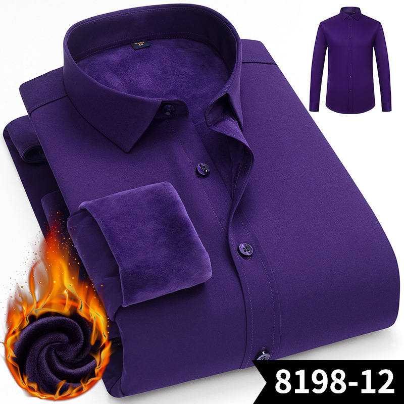 겨울용 신축성 보온 셔츠, 기모 안감, 두꺼운 단색 비즈니스 정장 남성용 이너웨어, 중년층 다용도 비즈니스 신사복