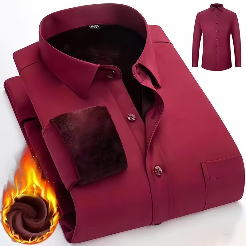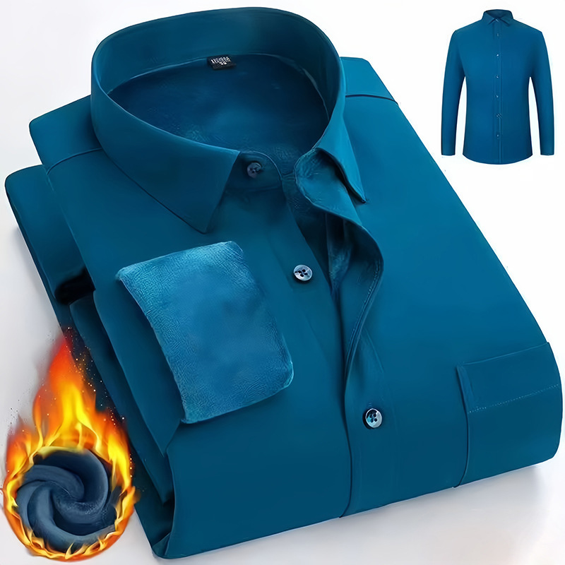 겨울용 신축성 보온 셔츠, 기모 안감, 두꺼운 단색 비즈니스 정장 남성용 이너웨어, 중년층 다용도 비즈니스 신사복스토어 가기