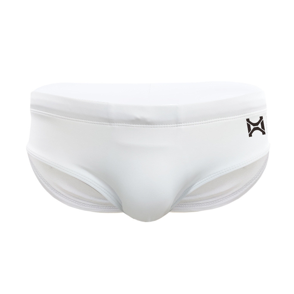 UXH 유럽 및 미국 남성용 흰색 삼각형 수영 트렁크 남성용 섹시한 더블 레이어 안티 러닝 라이트 남성용 간단한 WIFI 인쇄 수영 트렁크