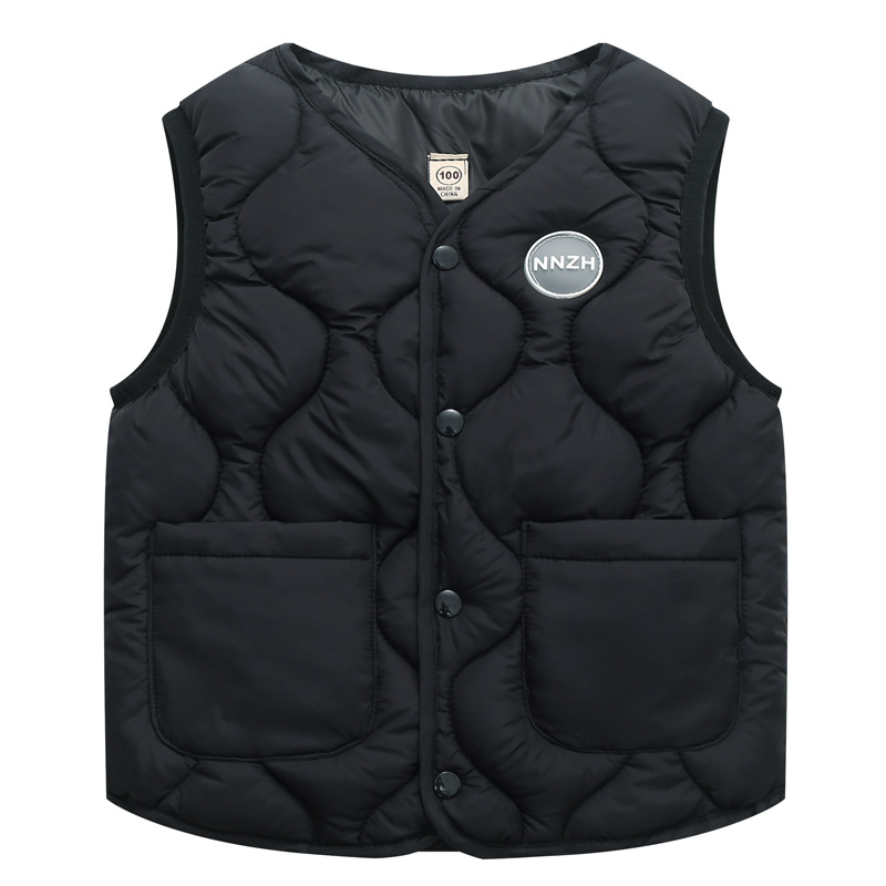 2025 가을, 겨울 새로운 어린이 다운 코튼 조끼 소년과 소녀 코튼 조끼 중대형 어린이 학생 따뜻한 라이너 조끼