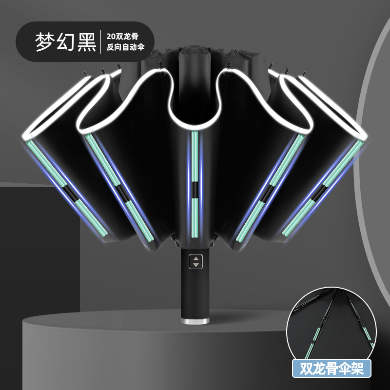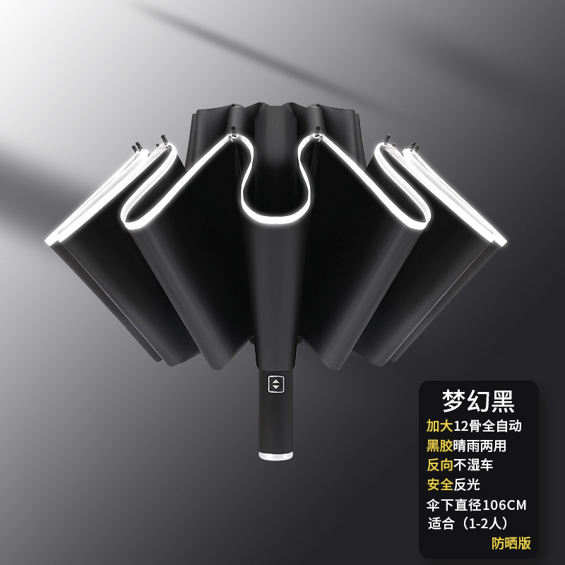 • 새로운 업그레이드 된 12 본 리버스 써니 우산-반사 스트립-드림 블랙