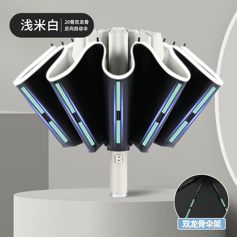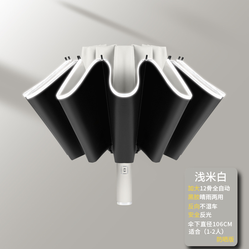 • 새롭게 업그레이드된 12 본 리버스 써니 우산-반사 스트립-라이트 라이스 화이트