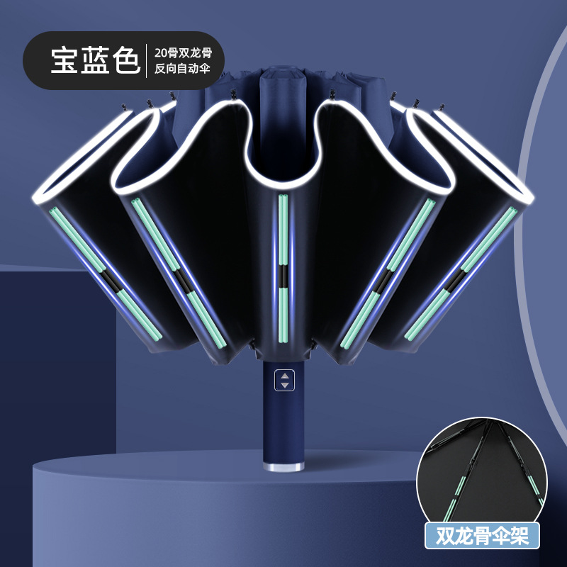 • 20-뼈 역방향 풀 쉐이딩 우산-로얄 블루