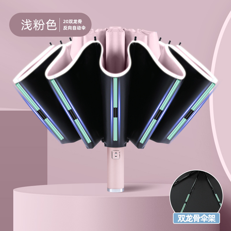 • 20-뼈 역전 풀 쉐이딩 우산-라이트 핑크