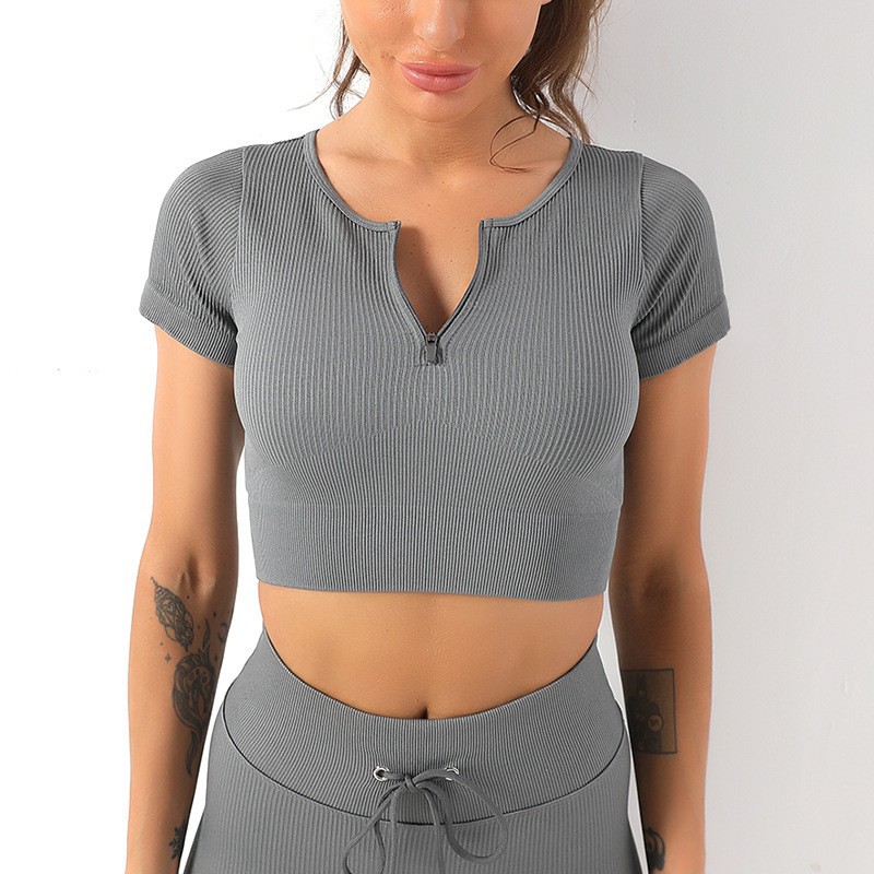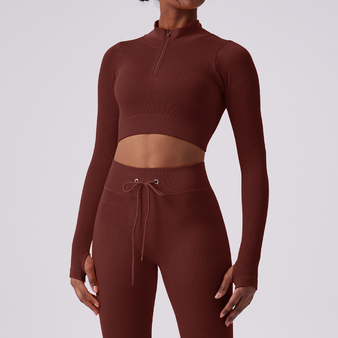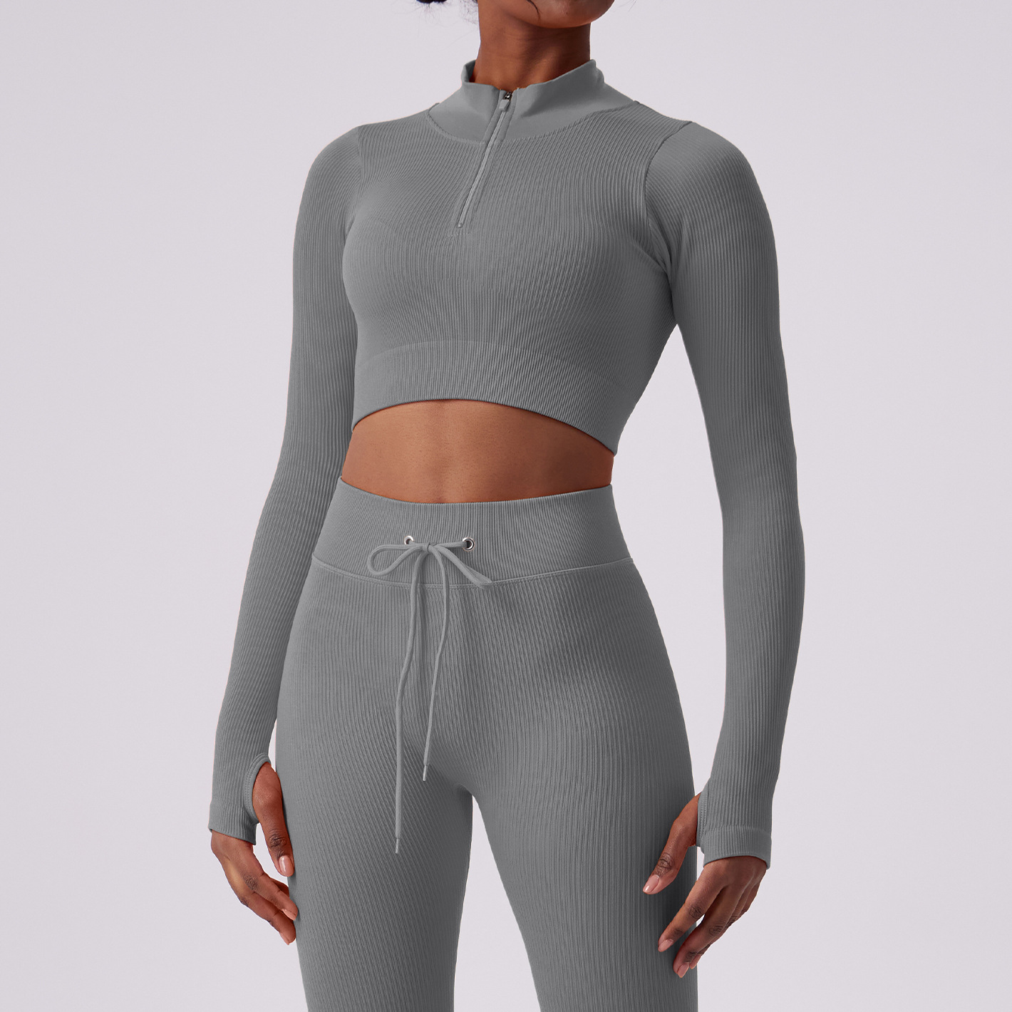 [Zhejiang Jin] 유럽과 미국의 속건성 탄성 원활한 요가 의류 긴팔 탑 여성 탄성 지퍼 스포츠 피트니스 의류