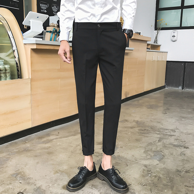 亚马逊秋季新款休闲西裤男小脚裤韩版修身免烫纯色正装长裤西装裤