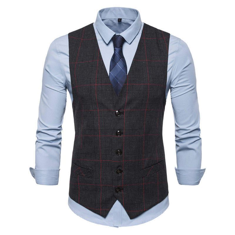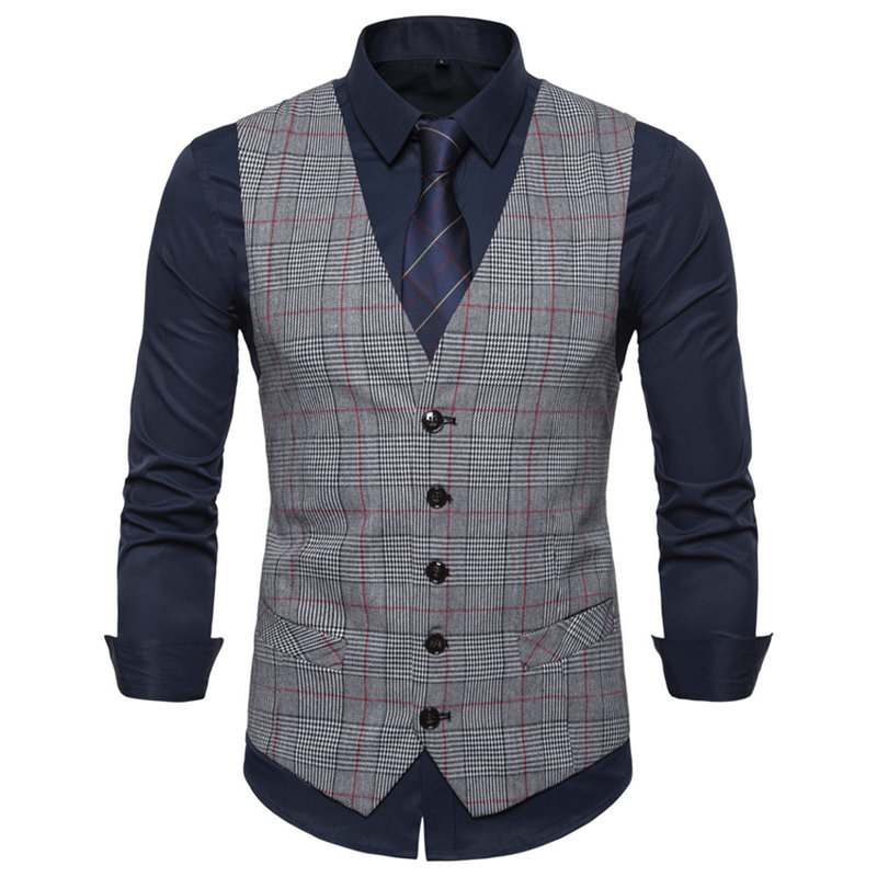 대외 무역 유럽 크기 남자의 싱글 브레스트 V-넥 세트 격자 무늬 조끼 플러스 사이즈 통통한 차오 삼촌 비즈니스 조끼 조끼 조끼