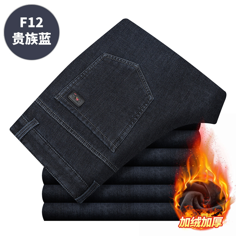 퍼키 캥거루 겨울 기모 두꺼운 청바지 스트레치 하이 웨이스트 중년 남성의 스트레이트 데님 긴 바지스토어 가기