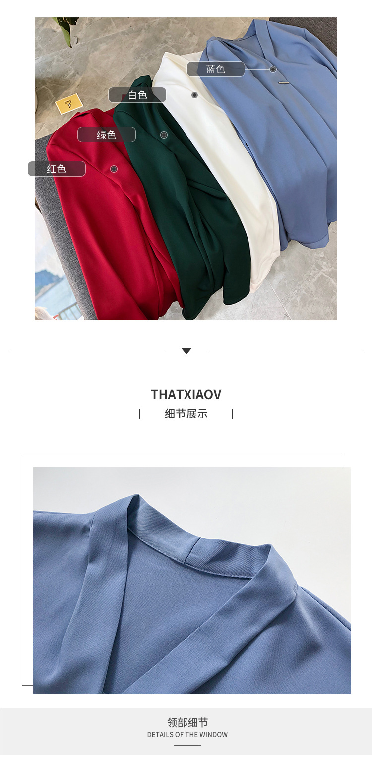 가을 신상 부드러운 스타일 브이넥 셔츠 여성 긴팔 상의 한국 스타일 쉬폰 셔츠 단색 기본 출근복