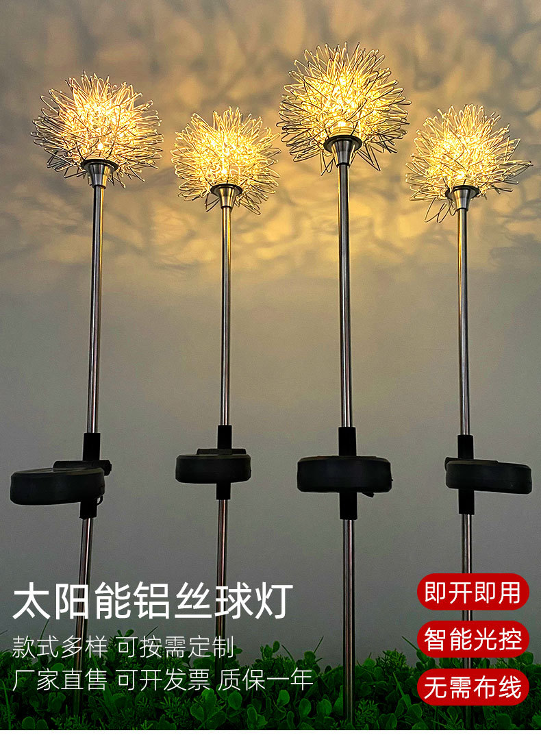 크로스 보더 태양열 알루미늄 민들레 플러그인 야외 방수 발광 알루미늄 볼 램프 안뜰 정원 잔디 램프스토어 가기