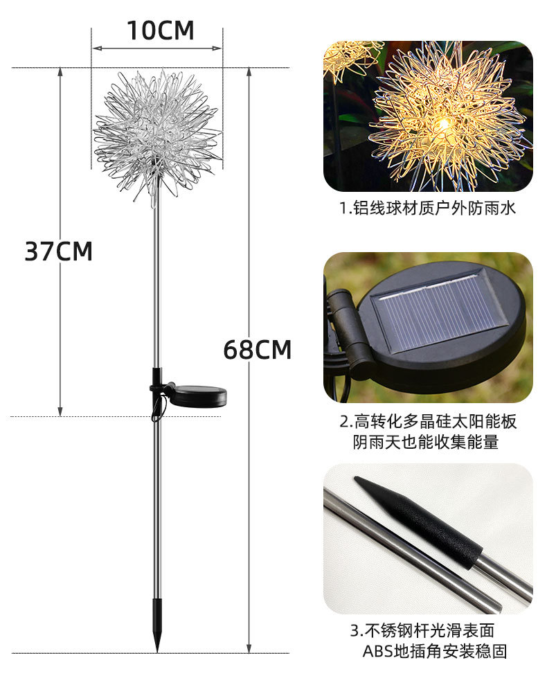 크로스 보더 태양열 알루미늄 민들레 플러그인 야외 방수 발광 알루미늄 볼 램프 안뜰 정원 잔디 램프