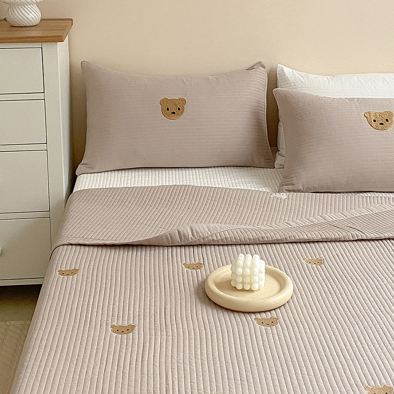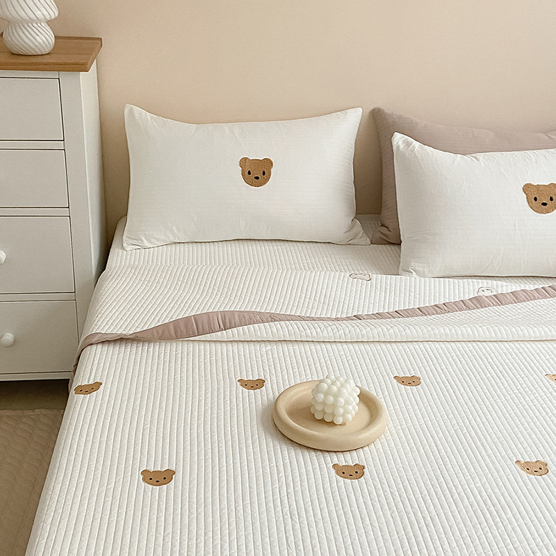 한국 스타일 퀼트 순면 자수 곰 침대 커버 면 타월 자수 침대 시트 침대 커버 담요 점심 시간 에어컨 이불스토어 가기