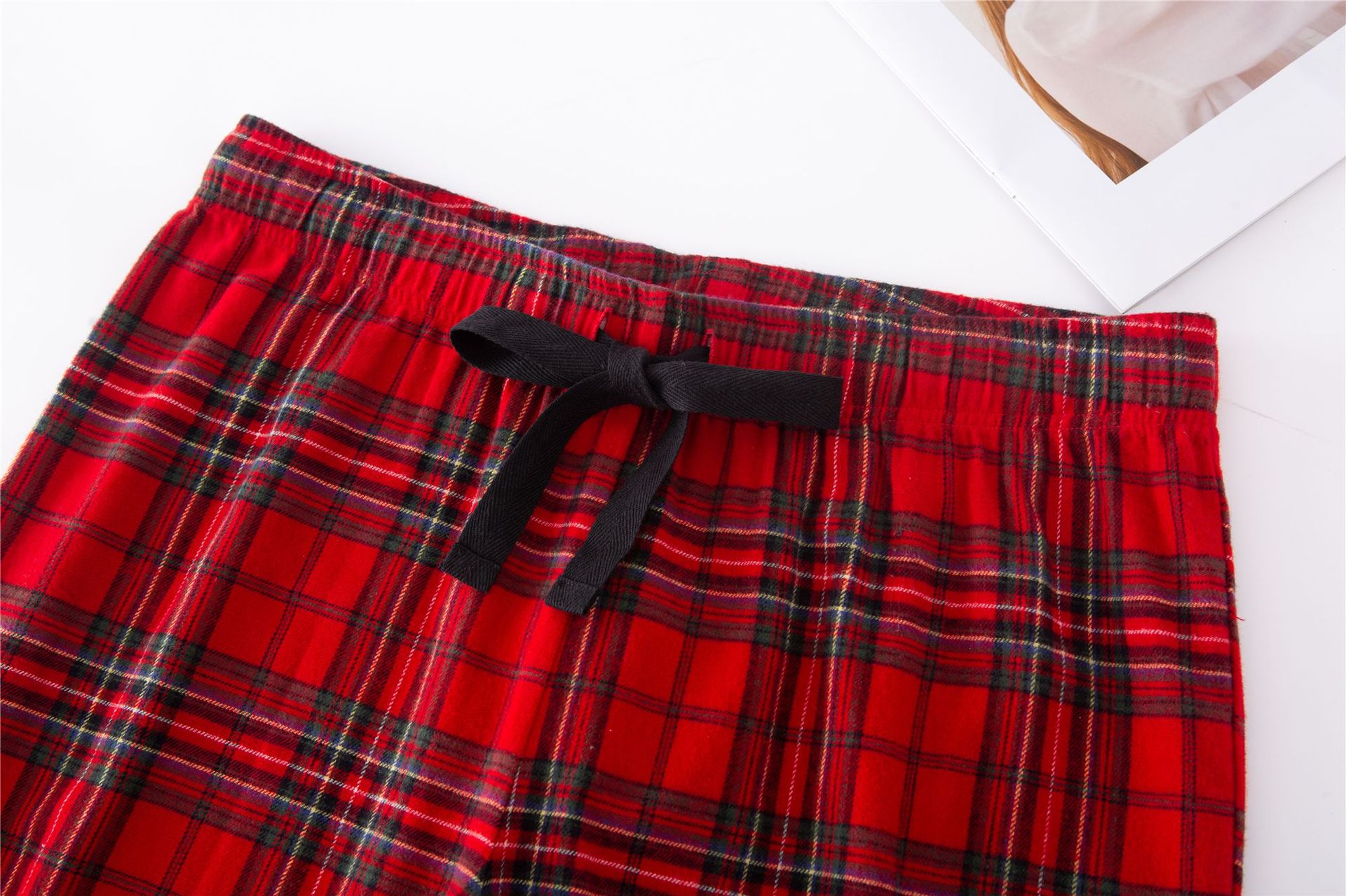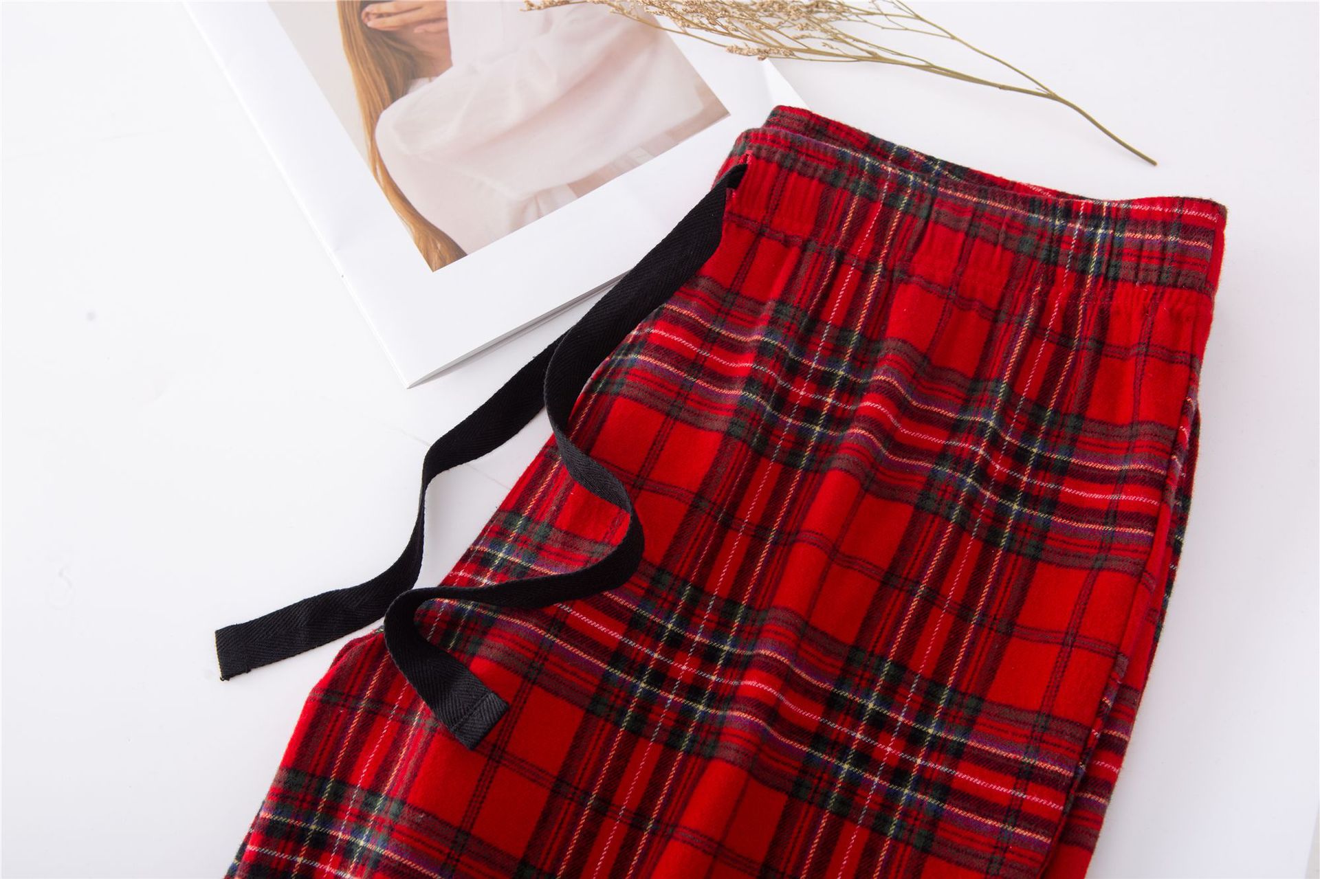 가을과 겨울 남자와 여자의 잠옷 세트 크리스마스 커플의 가정 옷 플란넬 브러쉬 빨간 격자 무늬 느슨한 플러스 사이즈 긴 소매