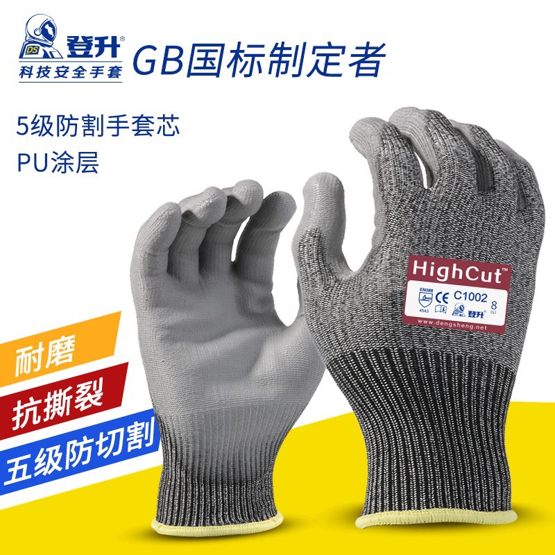 Dengsheng 노동 보호 내마모성 장갑 C1002 절단 방지 찌르기 방지 보호 장갑 5 등급 절단 방지 작업 미끄럼 방지 pu 접착제 코팅