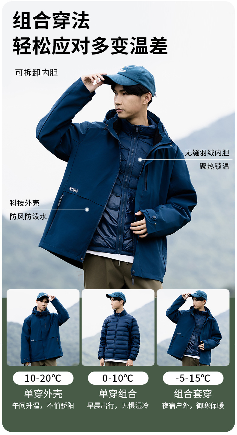남자와 여자의 three-in-one 새로운 하이 퀄리티 작업복 커플의 야외 여행 방한 방수 따뜻한 재킷스토어 가기