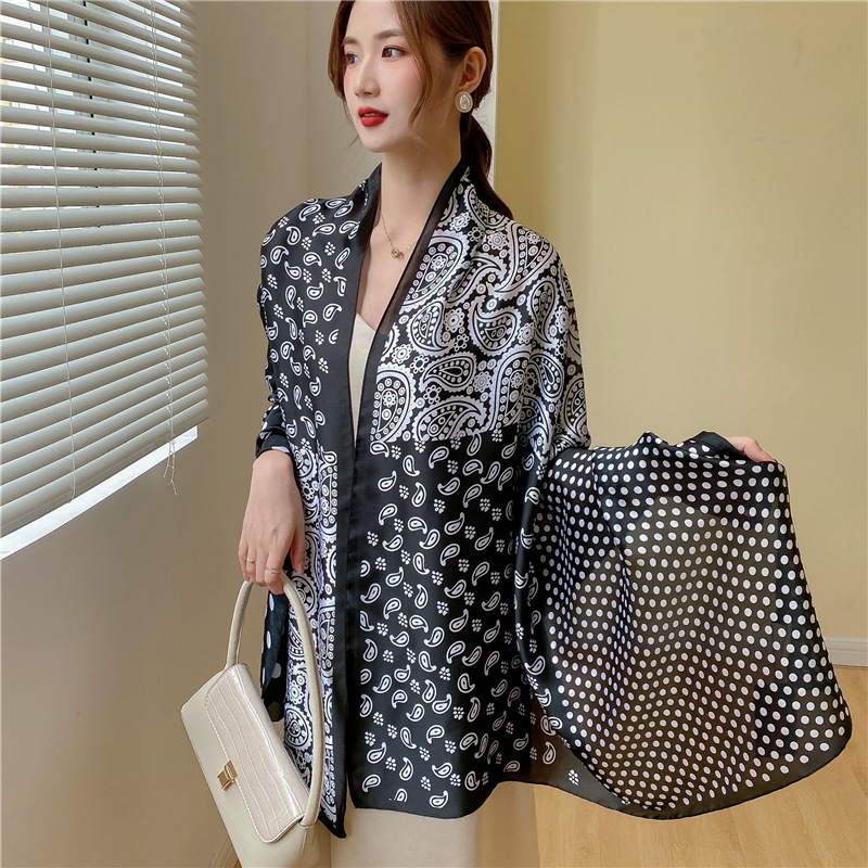 한국식 물방울 무늬 실크 스카프 빈티지 캐슈 컬러 매칭 흑백 스카프 가을과 겨울 새로운 스카프 숄 얇은 여행 타월스토어 가기
