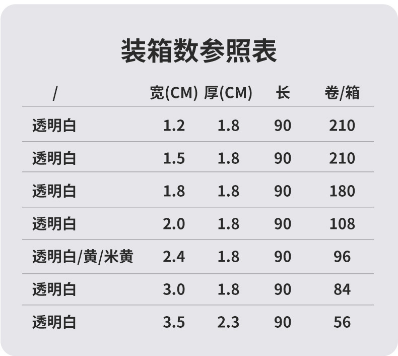 • 투명한 노란색 [단일 롤]; 폭 2.4 * 두께 1.8 * 길이 90 [96 롤/상자]