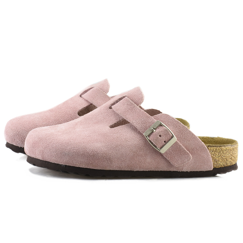 첫 번째 레이어 소 가죽 슬리퍼 Birkenstock 신발 정품 가죽 반 슬리퍼 여성 두꺼운 밑창 코르크 플랫 바닥 게으른 발가락 슬리퍼 겉옷