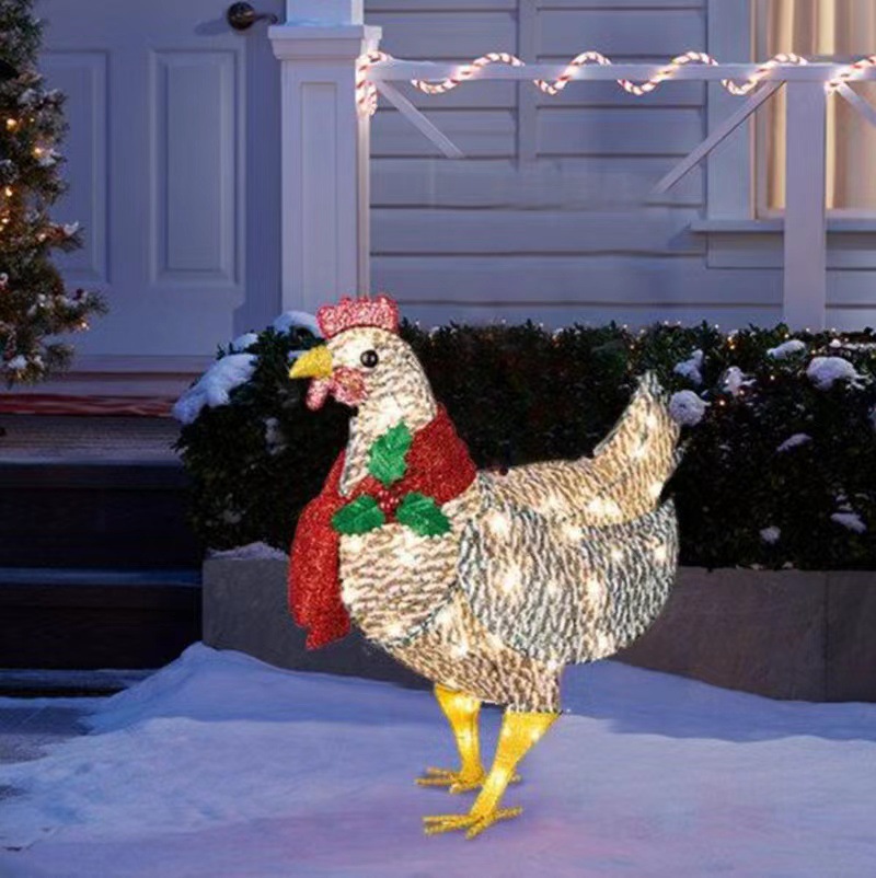 크로스 보더 크리스마스 치킨 장식 장식품 led 빛나는 치킨 수지 공예 장식 디자인 수탉 크리스마스
