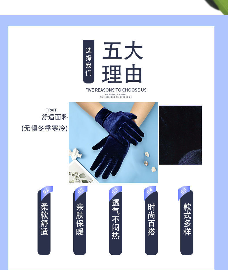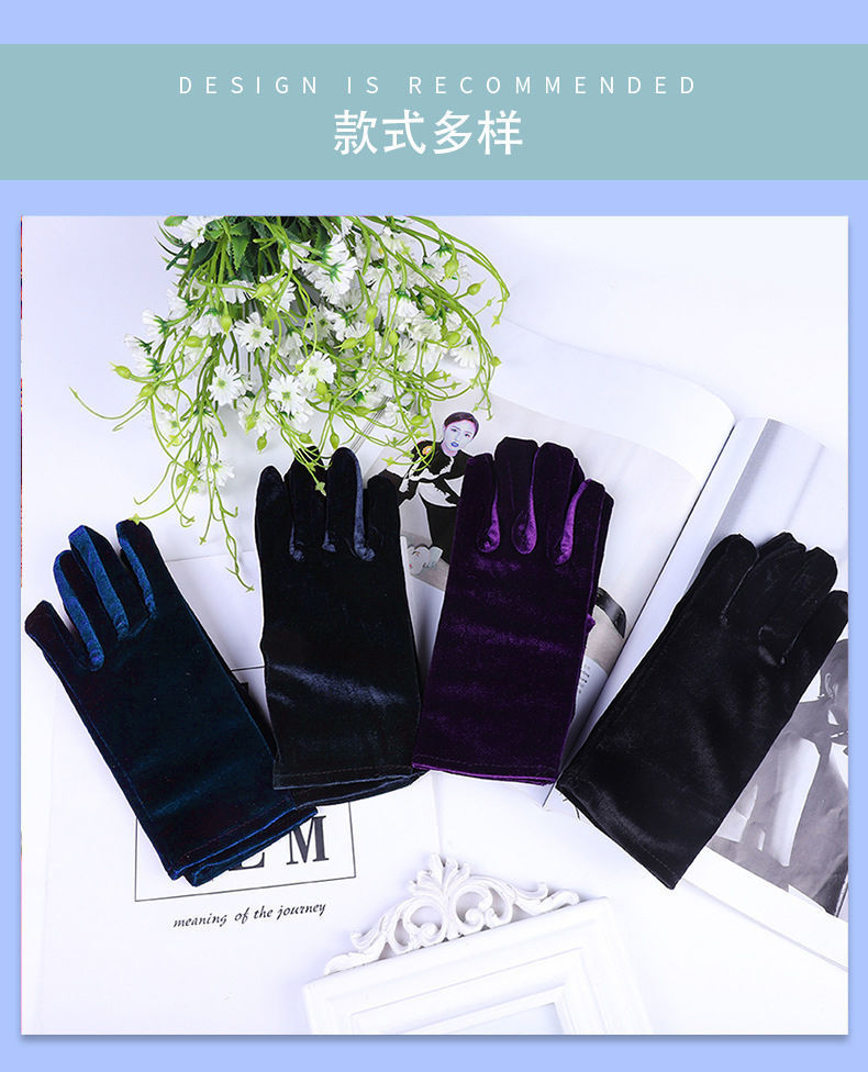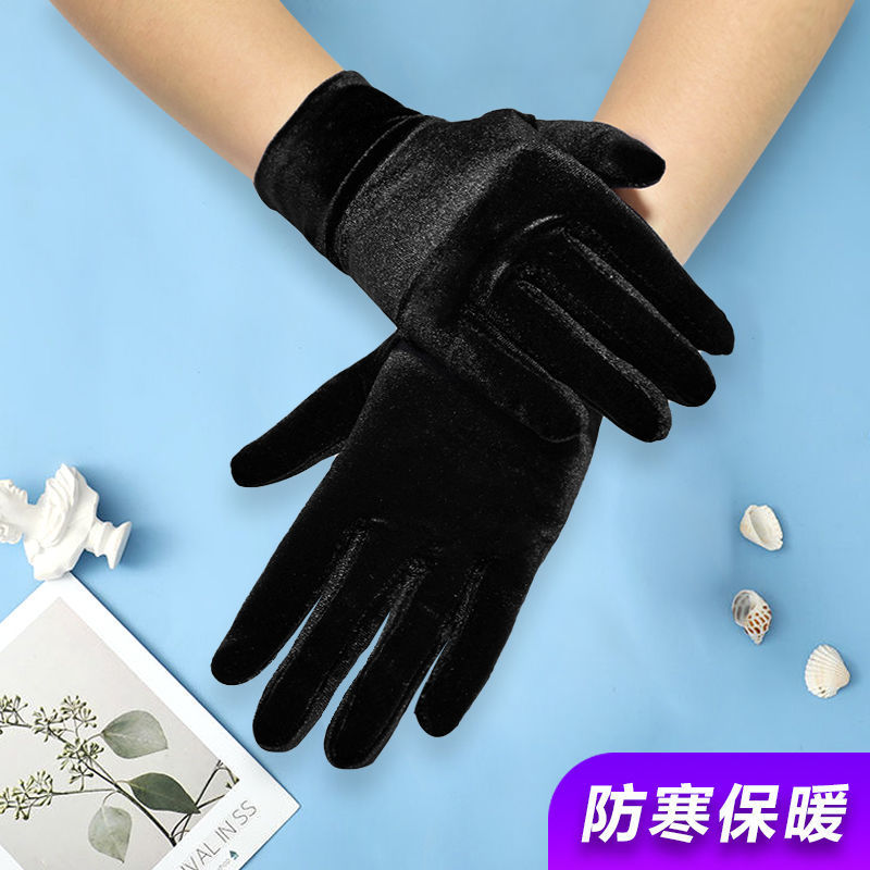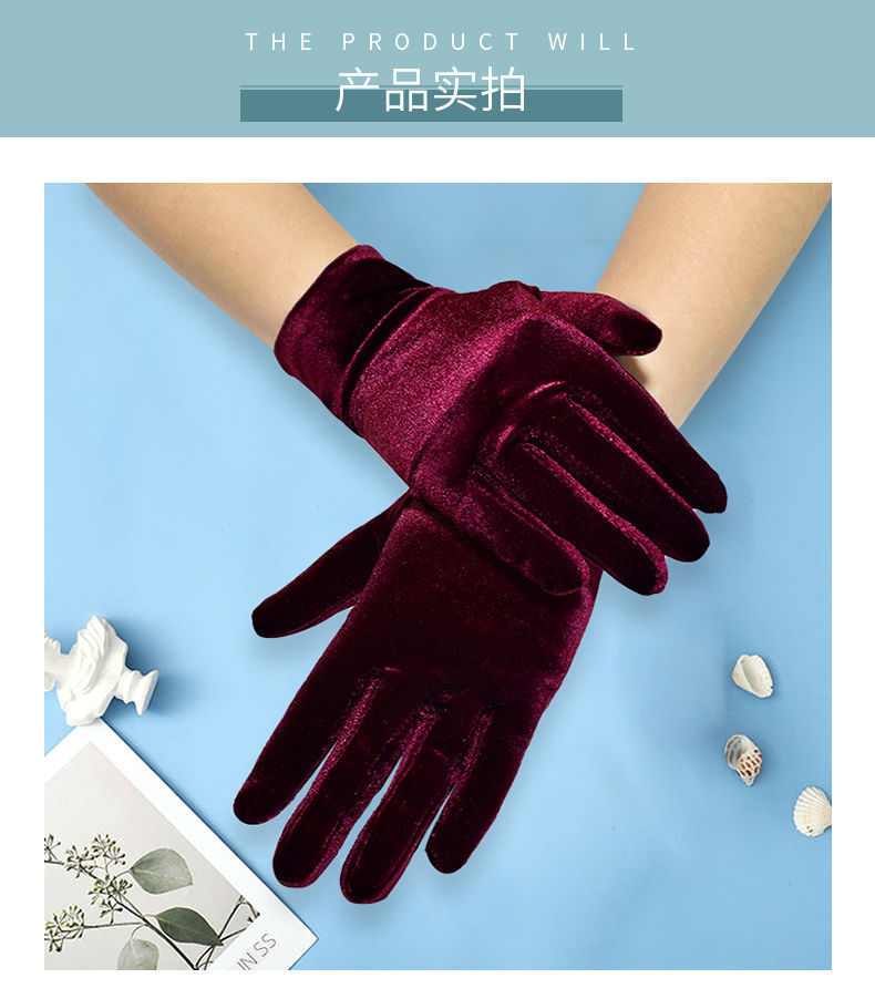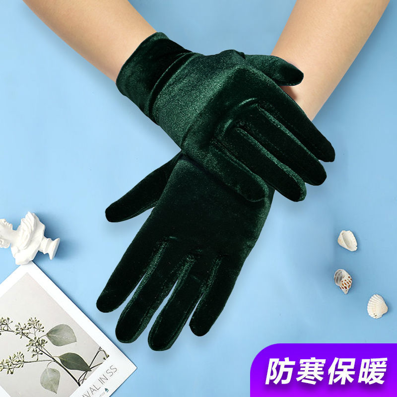여성용 짧은 스트레치 골드 벨벳 장갑 가을과 겨울 차가운 따뜻한 플란넬 장갑 복고풍 댄스 캐주얼 액세서리스토어 가기