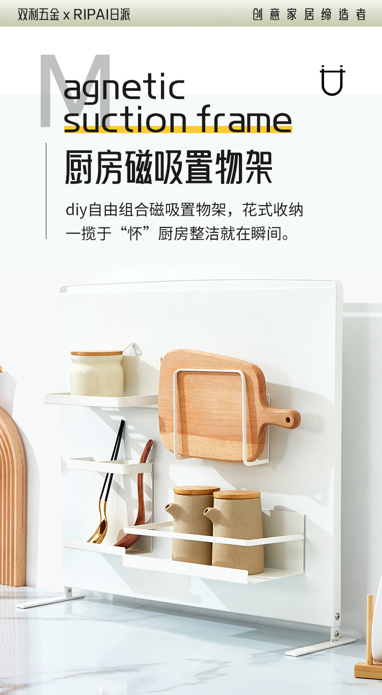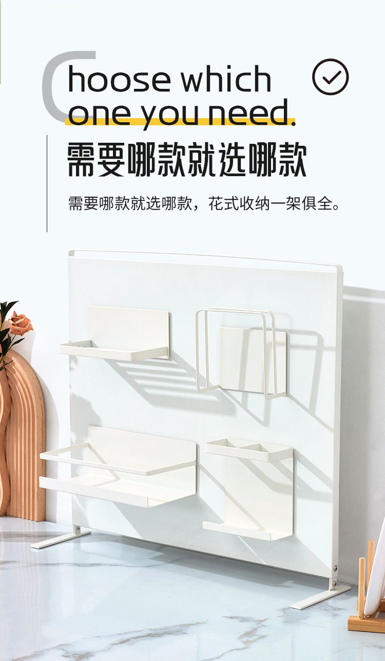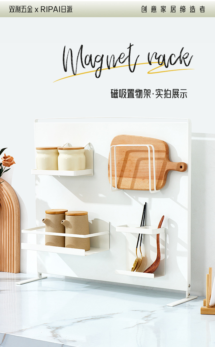 벽걸이형 자석 냉장고 측면 수납 선반, 주방 조리대 정리함, 무타공 도마 선반, 벽걸이형 수납 선반
