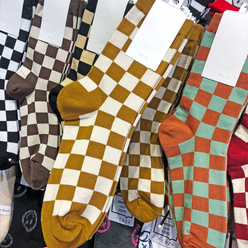 [도매] 한국 양말 동대문 체스 판 여성의면 양말 가을과 겨울 복고풍 스타일 컬러 매칭 체크 무늬 미드 튜브 양말스토어 가기