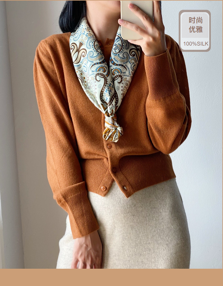 클래식 캐슈 플라워 실크 트윌 실크 스카프 대형 스퀘어 스카프 여성용 모든 매치 유행 서양 스타일 가을과 겨울 뽕나무 실크 숄