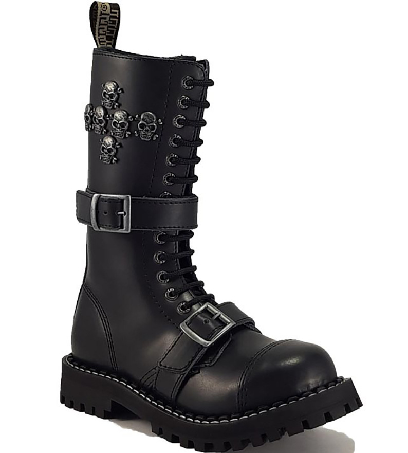 마일러 크로스 보더 대외 무역 새로운 2021 하이 배럴 마틴 라운드 토 레이스 업 해골 비스코스 신발 블랙 싱글 부츠스토어 가기