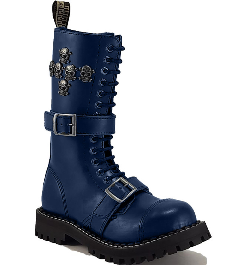 마일러 크로스 보더 대외 무역 새로운 2021 하이 배럴 마틴 라운드 토 레이스 업 해골 비스코스 신발 블랙 싱글 부츠