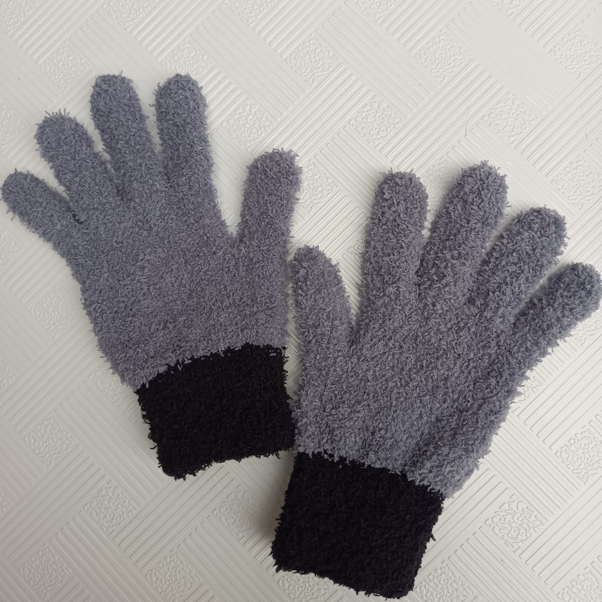 극세사 먼지 제거 따뜻한 산호 양털 장갑 세차 청소 단색 5 손가락 가정용 흡수성 드라이 헤어 장갑