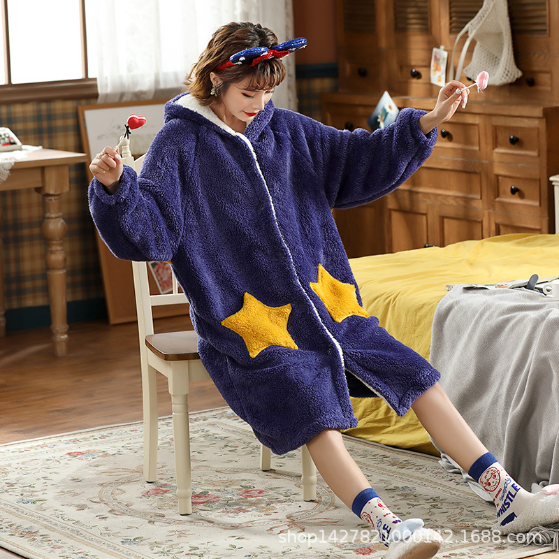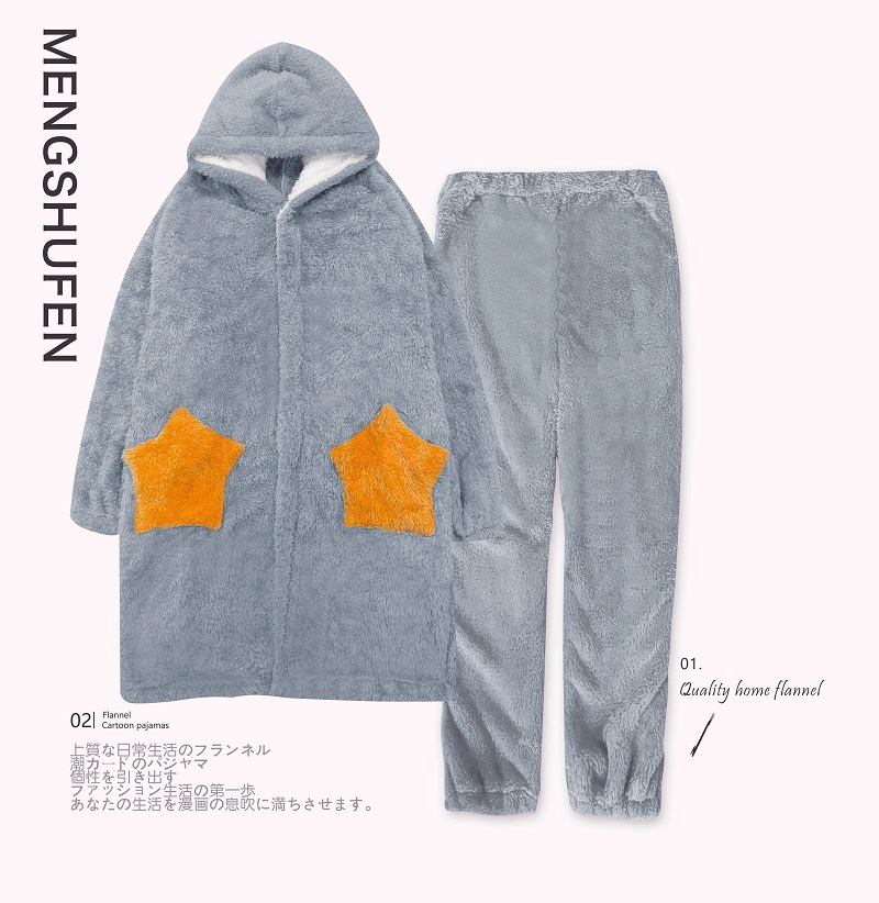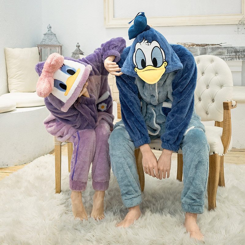 도널드 덕 남자의 잠옷 잠옷 긴팔 가을과 겨울 여자의 커플 수 면 벨벳 산호 벨벳 두꺼운 가정 옷 세트스토어 가기